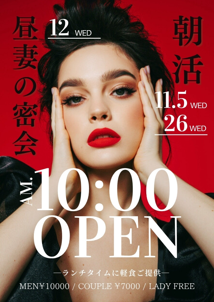 実施日の夜の部にご来店のご新規男性様・カップル様は入場料半額でご入店頂けます!